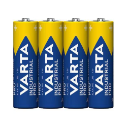 Piles alcalines AA Varta Industrial PRO 1,5 V vendues par 4, idéales pour alimenter jouets, lampes de poche, radios et autres appareils.